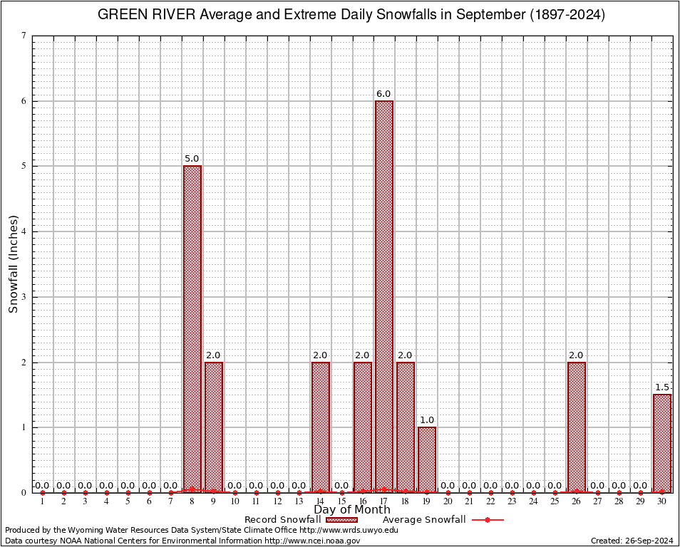 September Average and Extreme Daily Snowfall AMounts (1897-2024)
