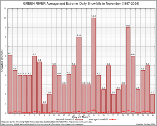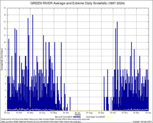Record Extreme and Average Daily Snowfall (1897-2024)