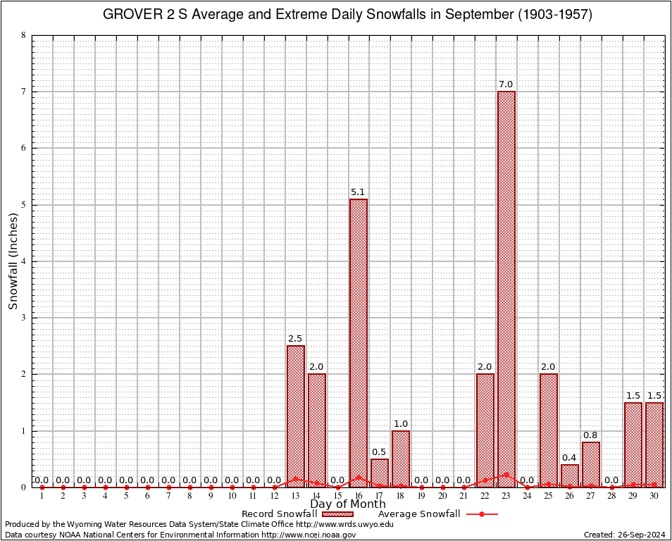 GROVER 2 S (484095) September Average and Extreme Daily Snowfall AMounts (1903-1957) To index page for GROVER 2 S