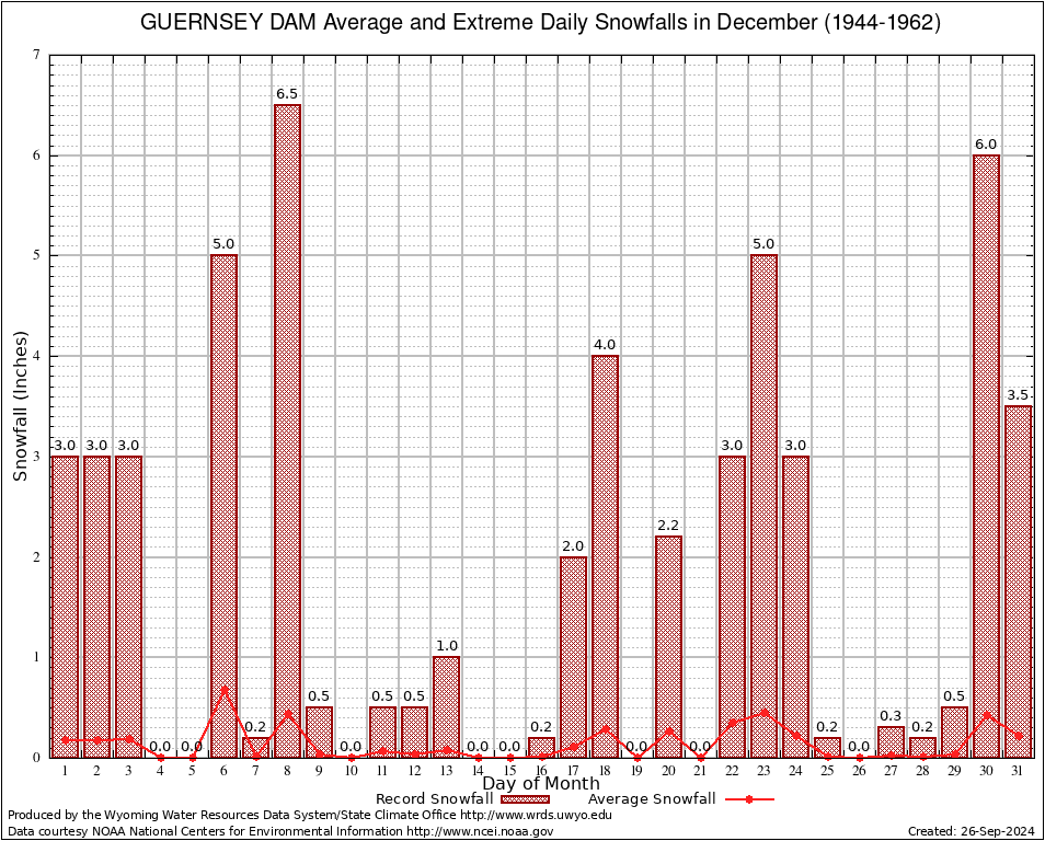December Average and Extreme Daily Snowfall AMounts (1944-1962)