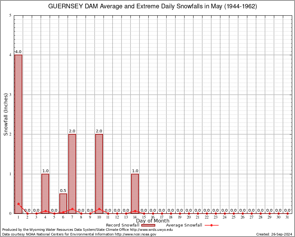 May Average and Extreme Daily Snowfall AMounts (1944-1962)