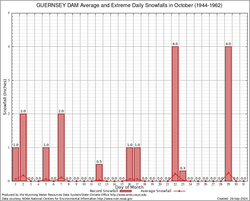 October Average and Extreme Daily Snowfall AMounts (1944-1962)