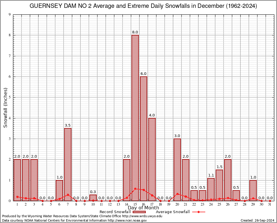 December Average and Extreme Daily Snowfall AMounts (1962-2024)