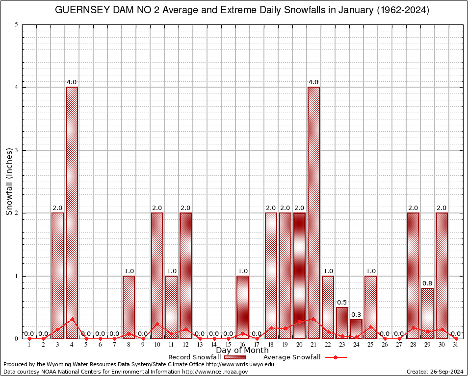 January Average and Extreme Daily Snowfall AMounts (1962-2024)