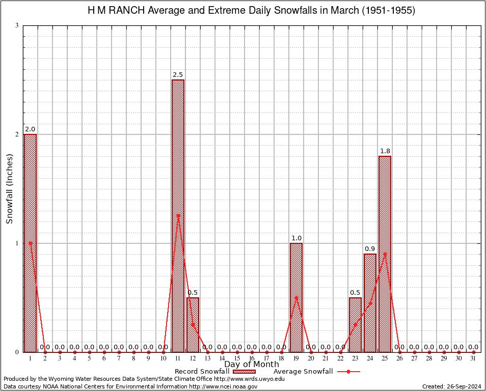 March Average and Extreme Daily Snowfall AMounts (1951-1955)