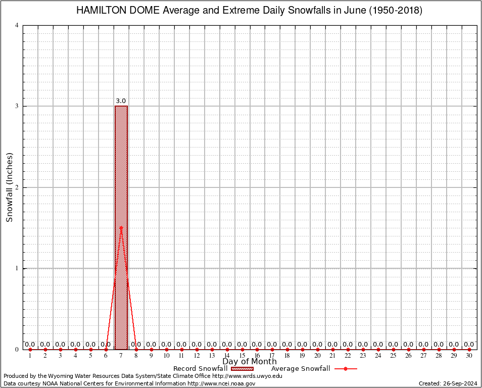 June Average and Extreme Daily Snowfall AMounts (1950-2018)