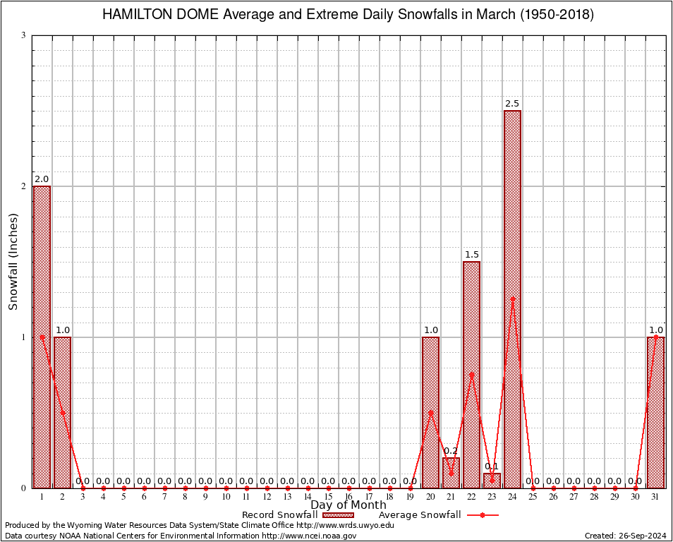 March Average and Extreme Daily Snowfall AMounts (1950-2018)