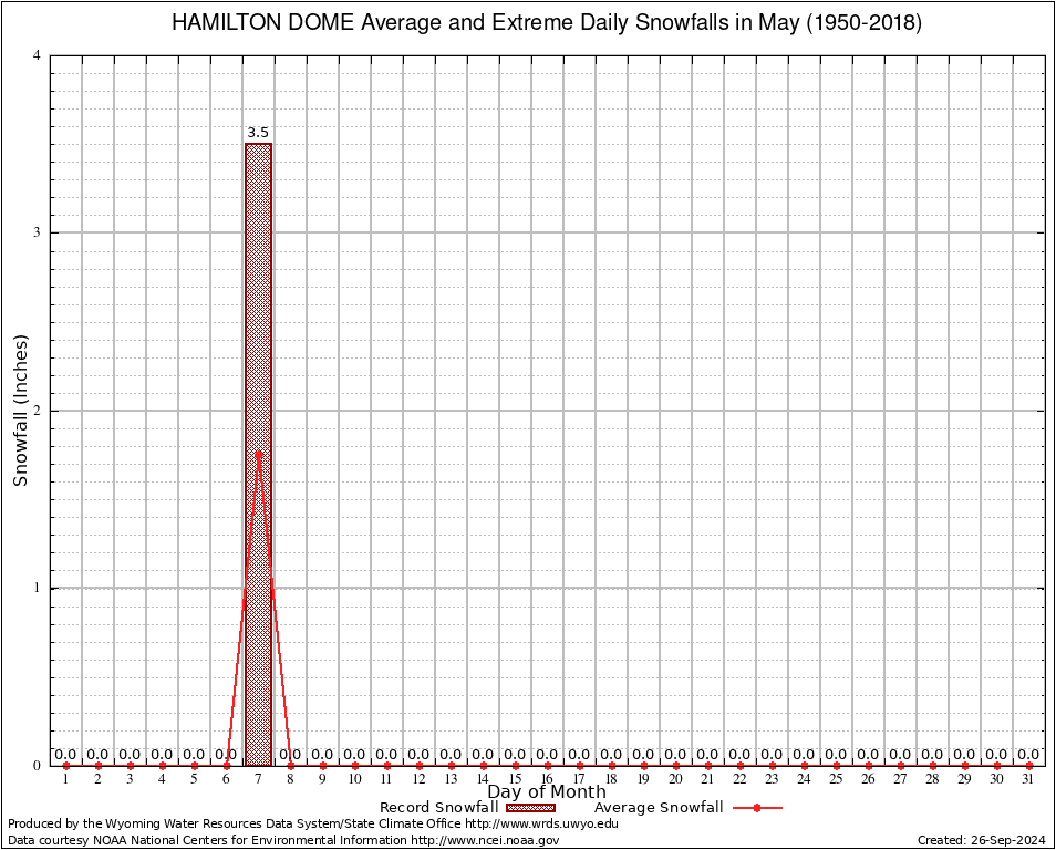 May Average and Extreme Daily Snowfall AMounts (1950-2018)