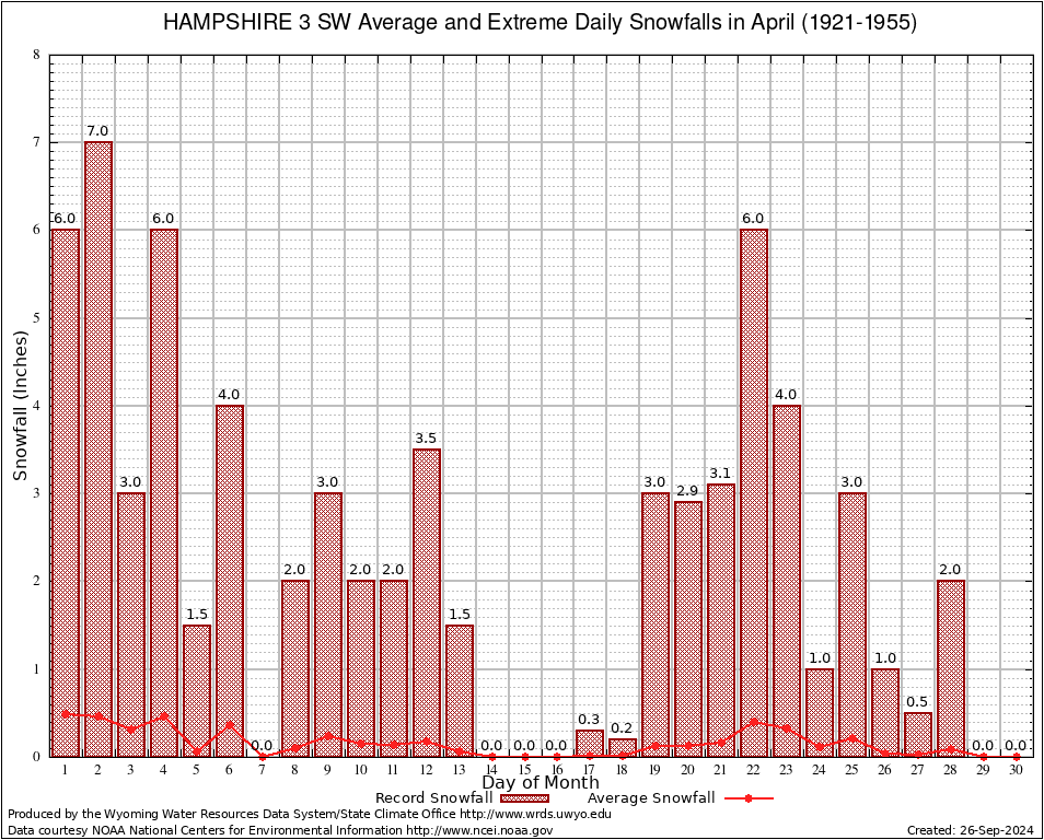 April Average and Extreme Daily Snowfall AMounts (1921-1955)