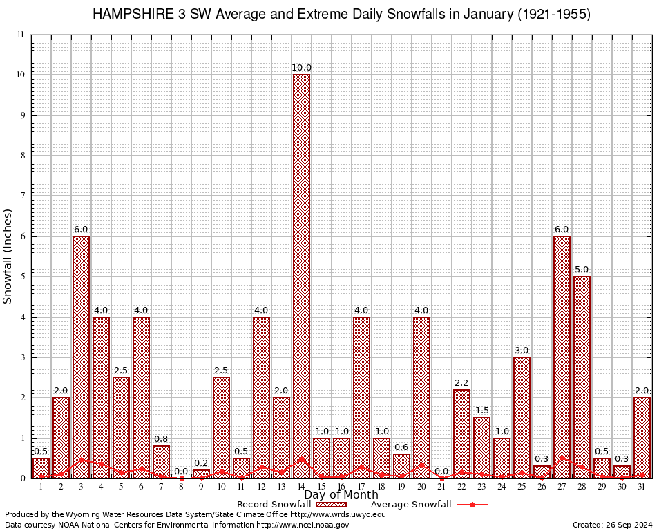 January Average and Extreme Daily Snowfall AMounts (1921-1955)