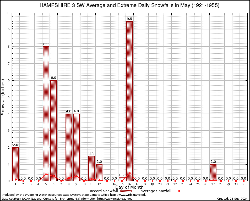 May Average and Extreme Daily Snowfall AMounts (1921-1955)