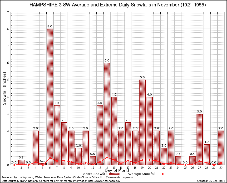 November Average and Extreme Daily Snowfall AMounts (1921-1955)