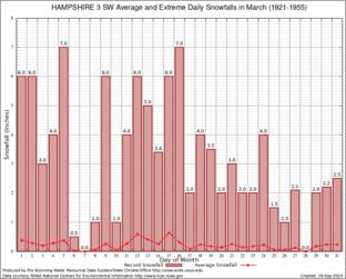 Record Extreme and Average Daily Snowfall (1921-1955)