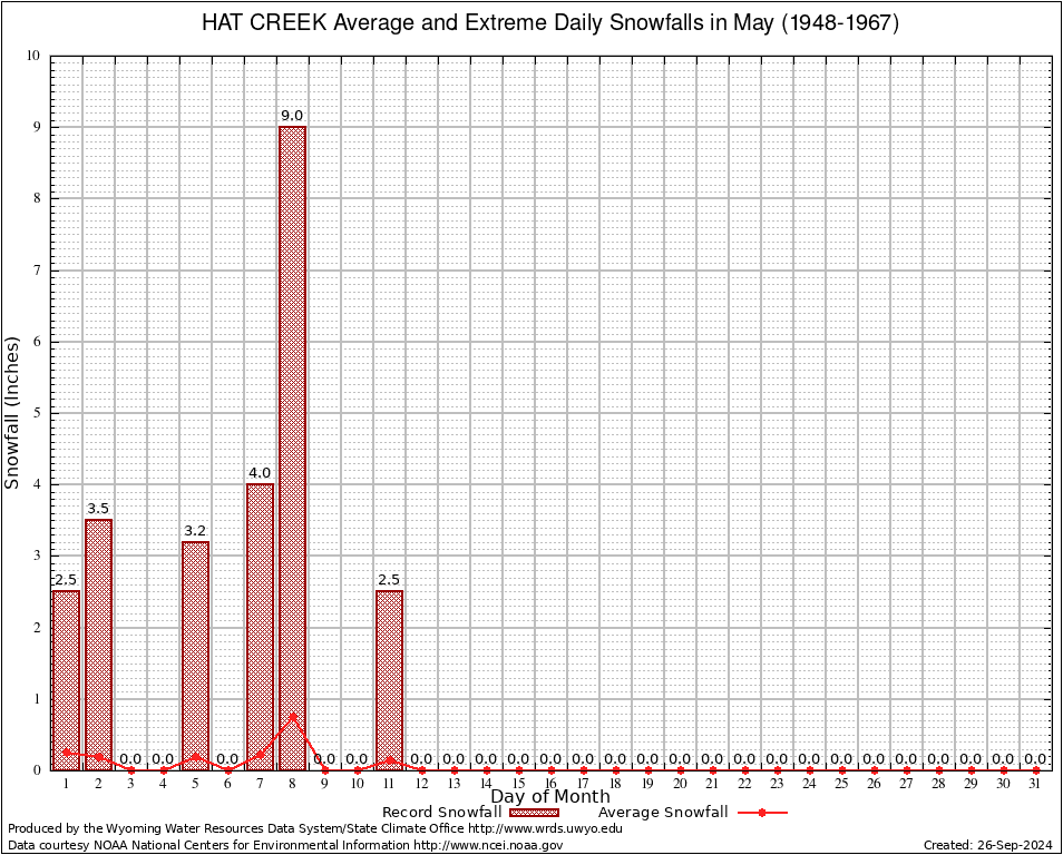 May Average and Extreme Daily Snowfall AMounts (1948-1967)