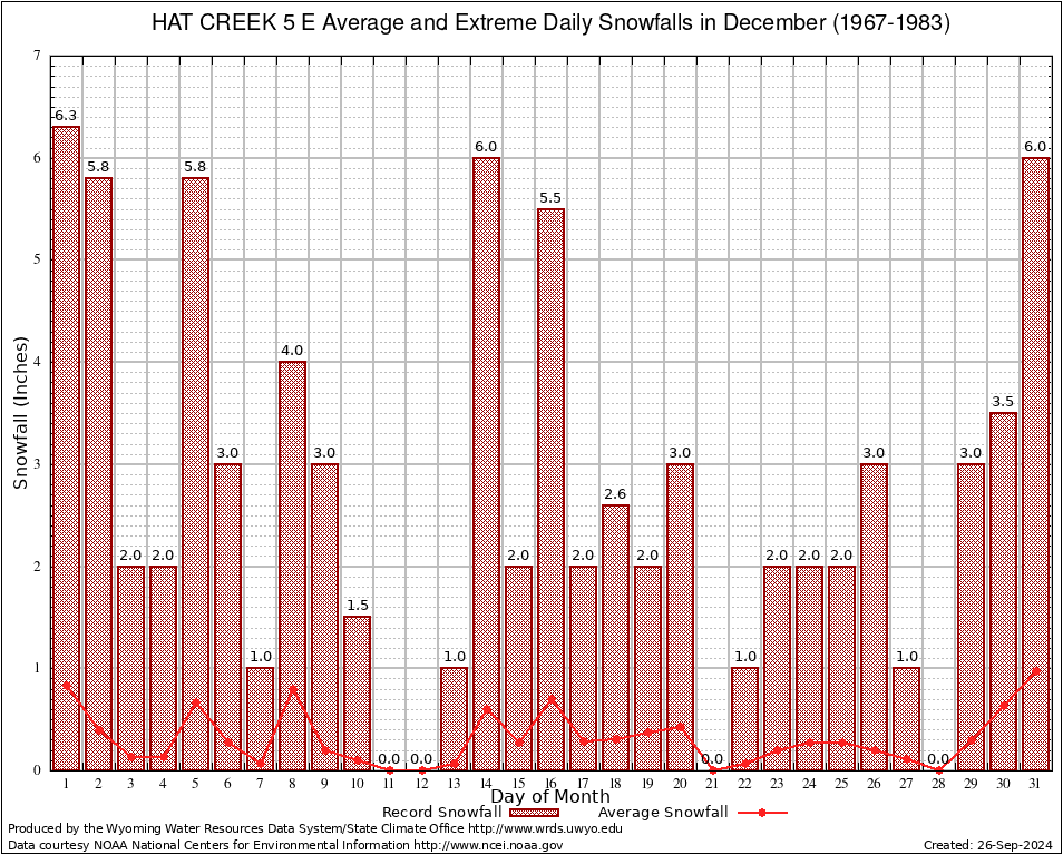 December Average and Extreme Daily Snowfall AMounts (1967-1983)
