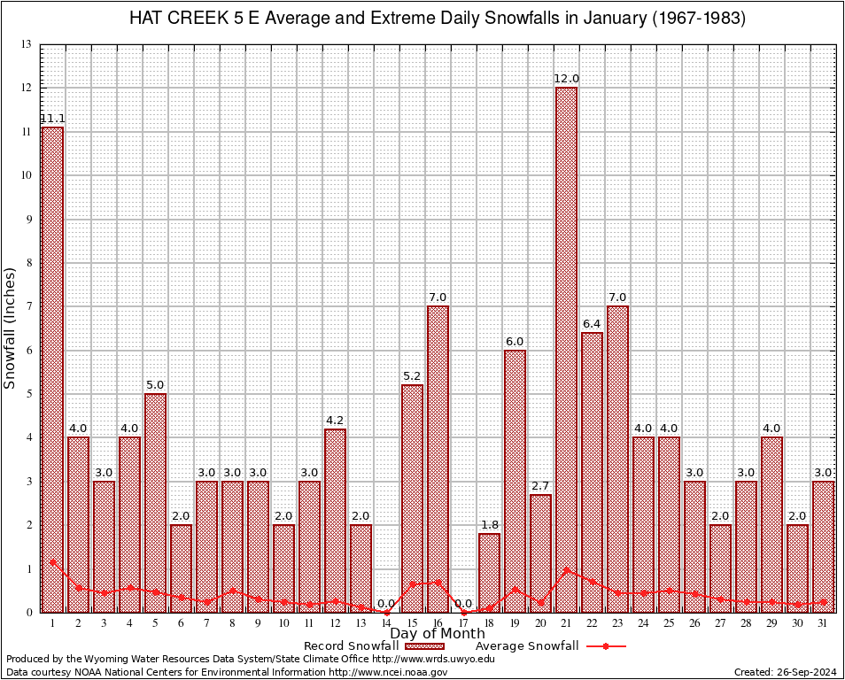 January Average and Extreme Daily Snowfall AMounts (1967-1983)