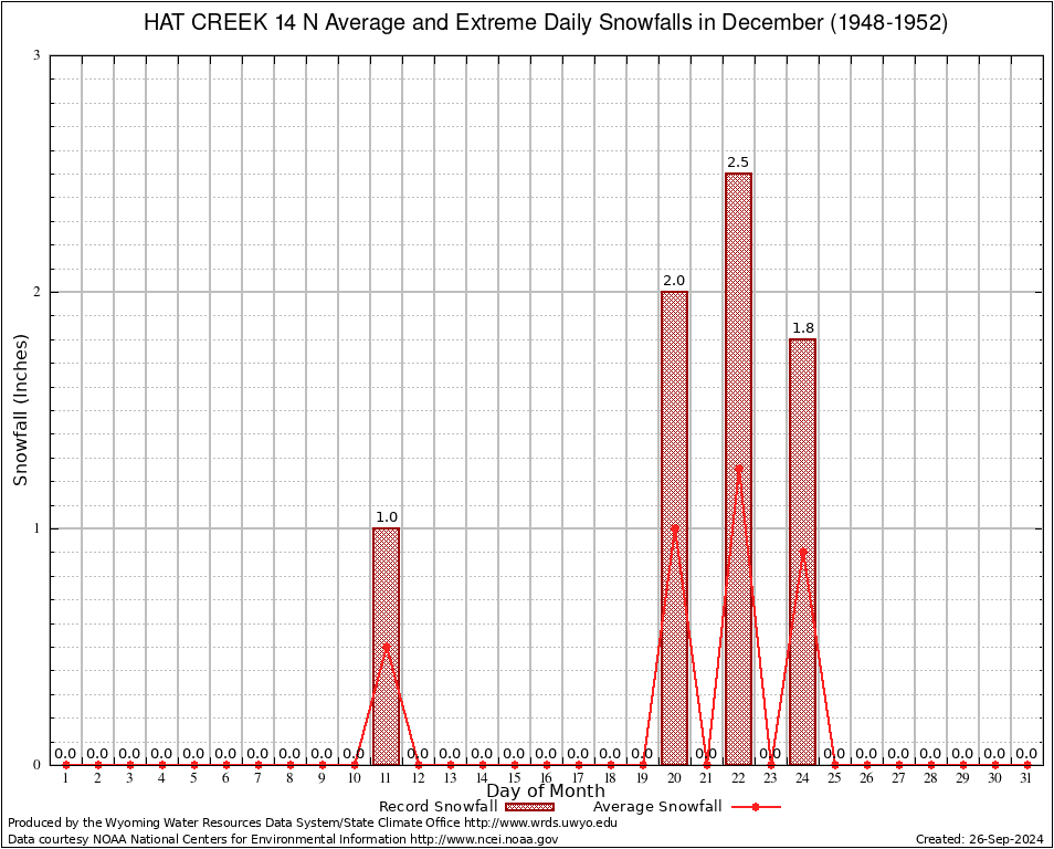 December Average and Extreme Daily Snowfall AMounts (1948-1952)