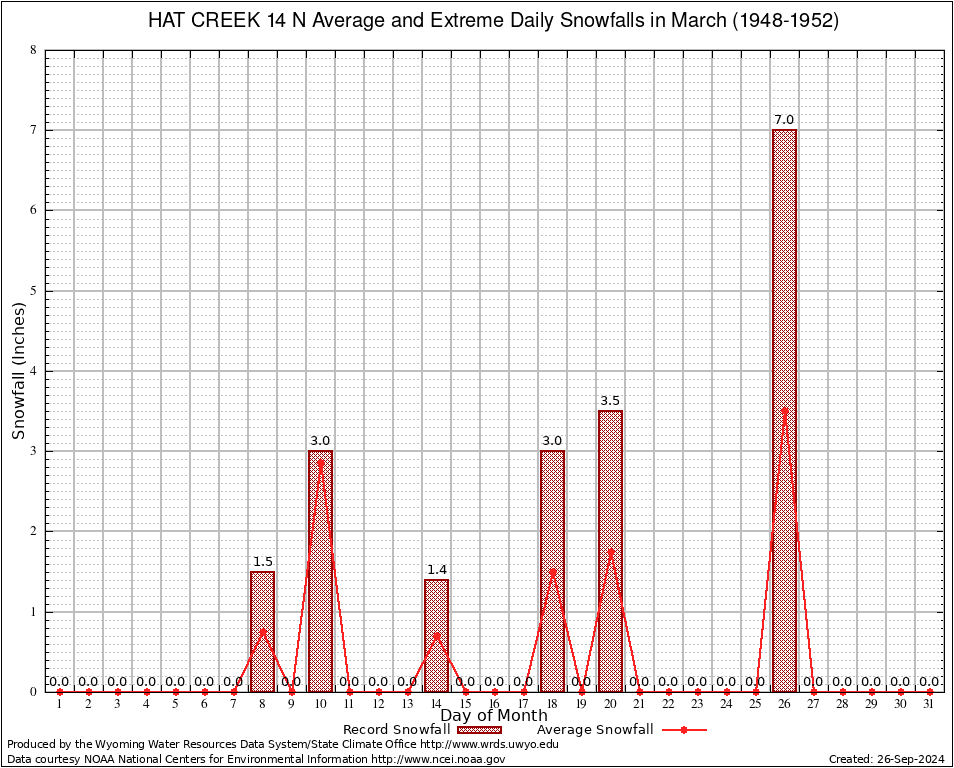 March Average and Extreme Daily Snowfall AMounts (1948-1952)