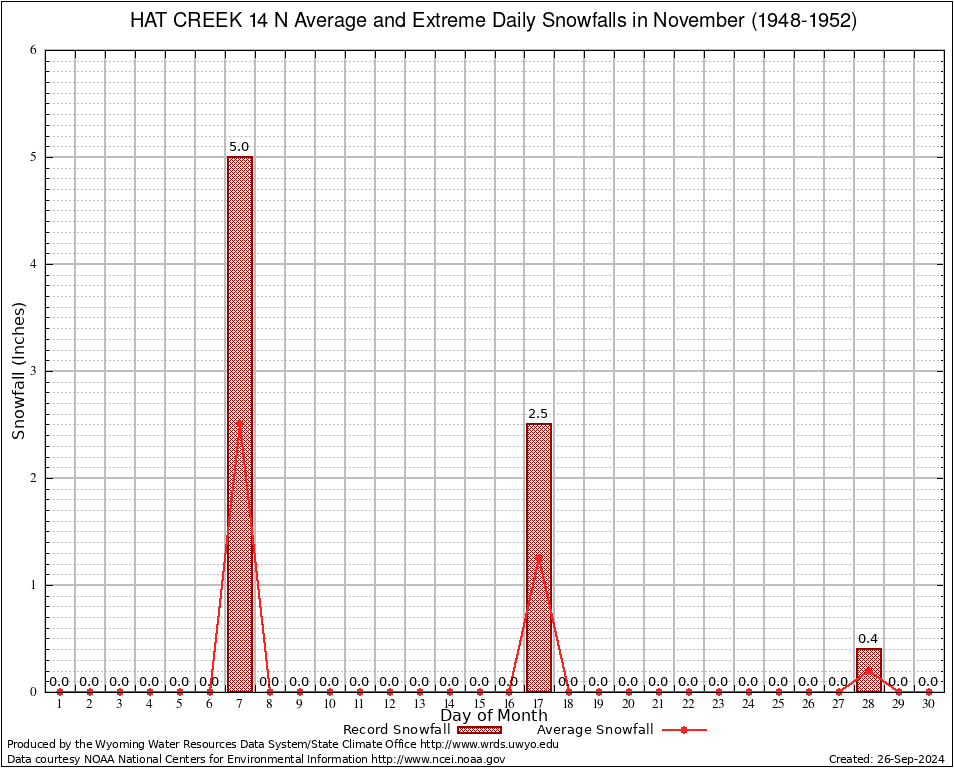 November Average and Extreme Daily Snowfall AMounts (1948-1952)