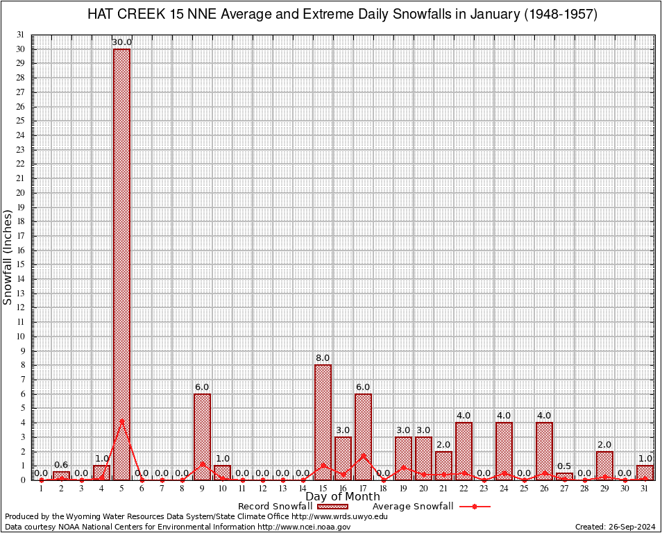 January Average and Extreme Daily Snowfall AMounts (1948-1957)