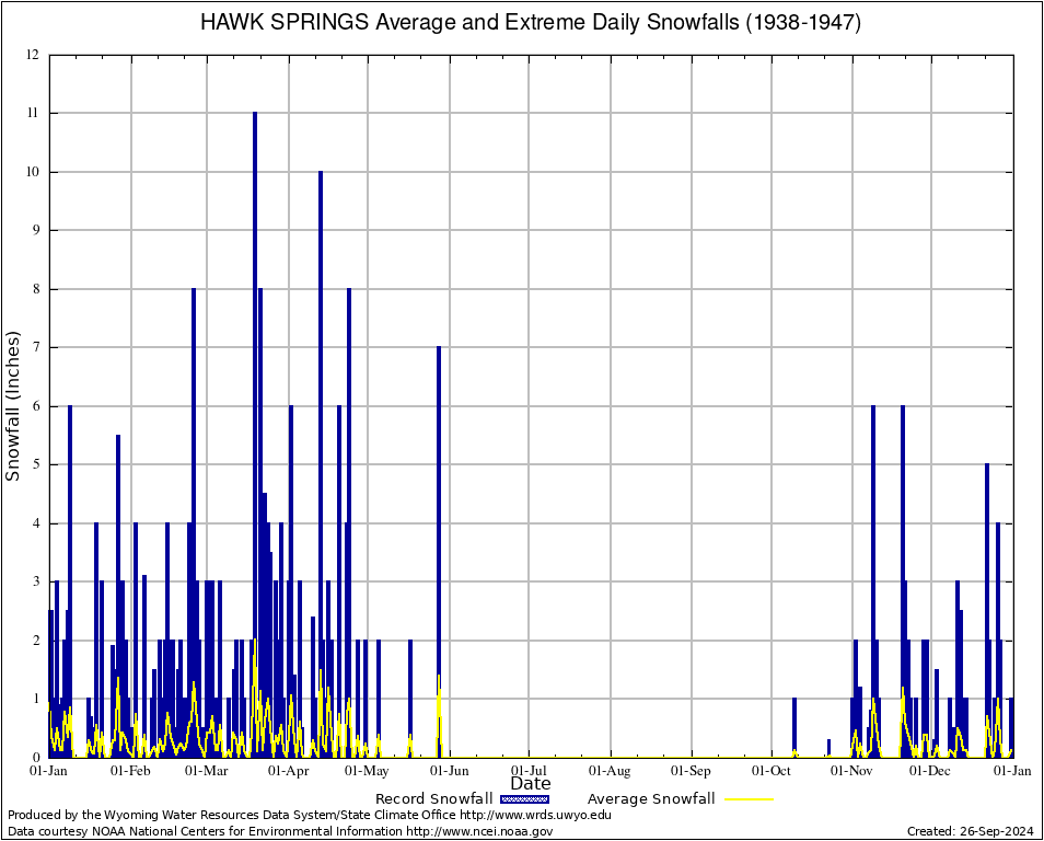 Annual Average and Extreme Daily Snowfall AMounts (1938-1947)