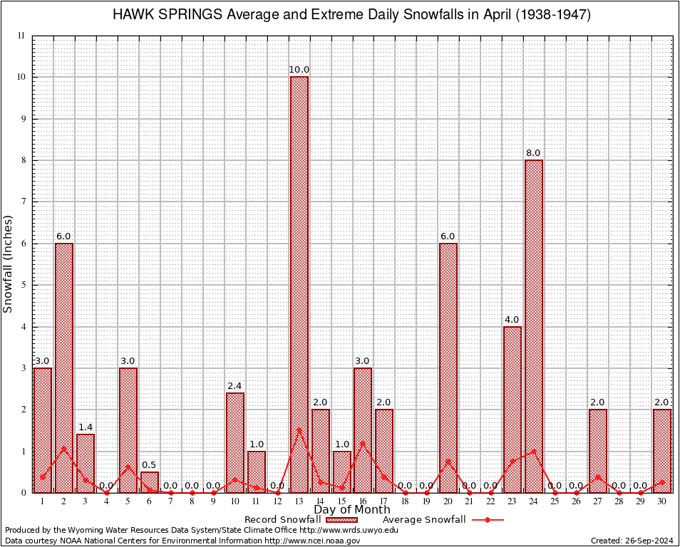 April Average and Extreme Daily Snowfall AMounts (1938-1947)