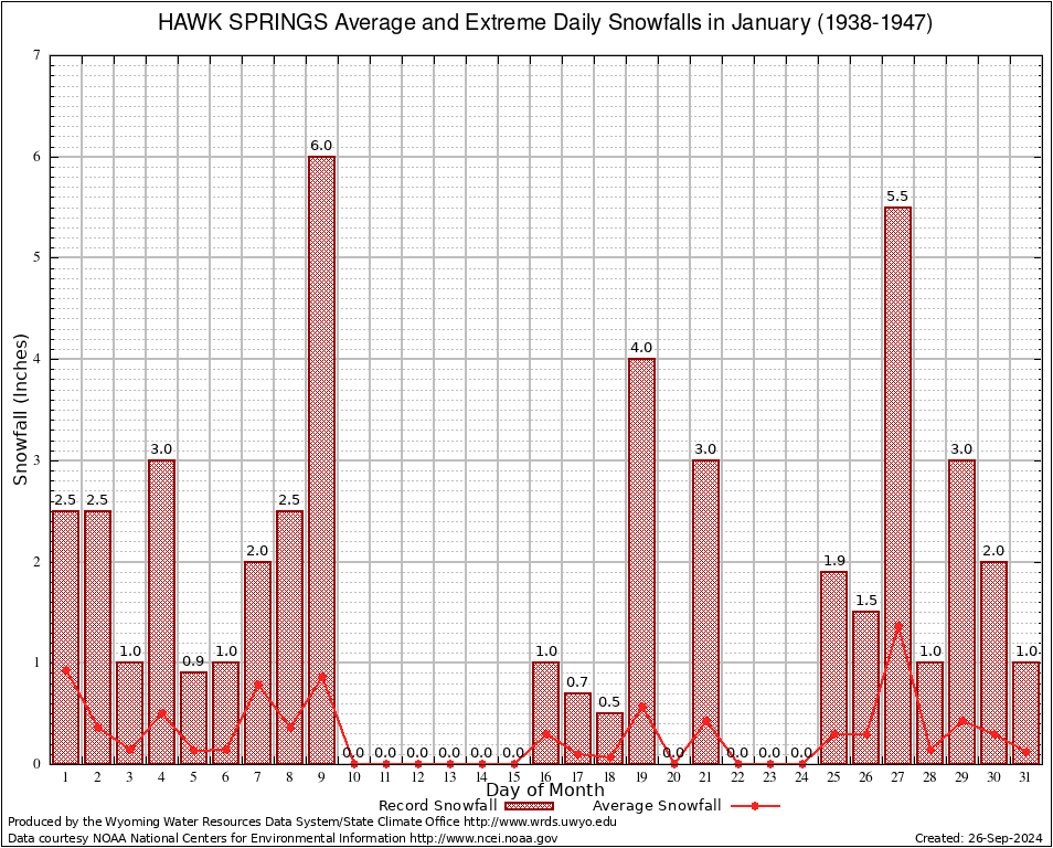 January Average and Extreme Daily Snowfall AMounts (1938-1947)