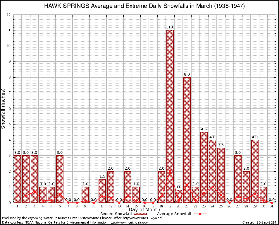 March Average and Extreme Daily Snowfall AMounts (1938-1947)
