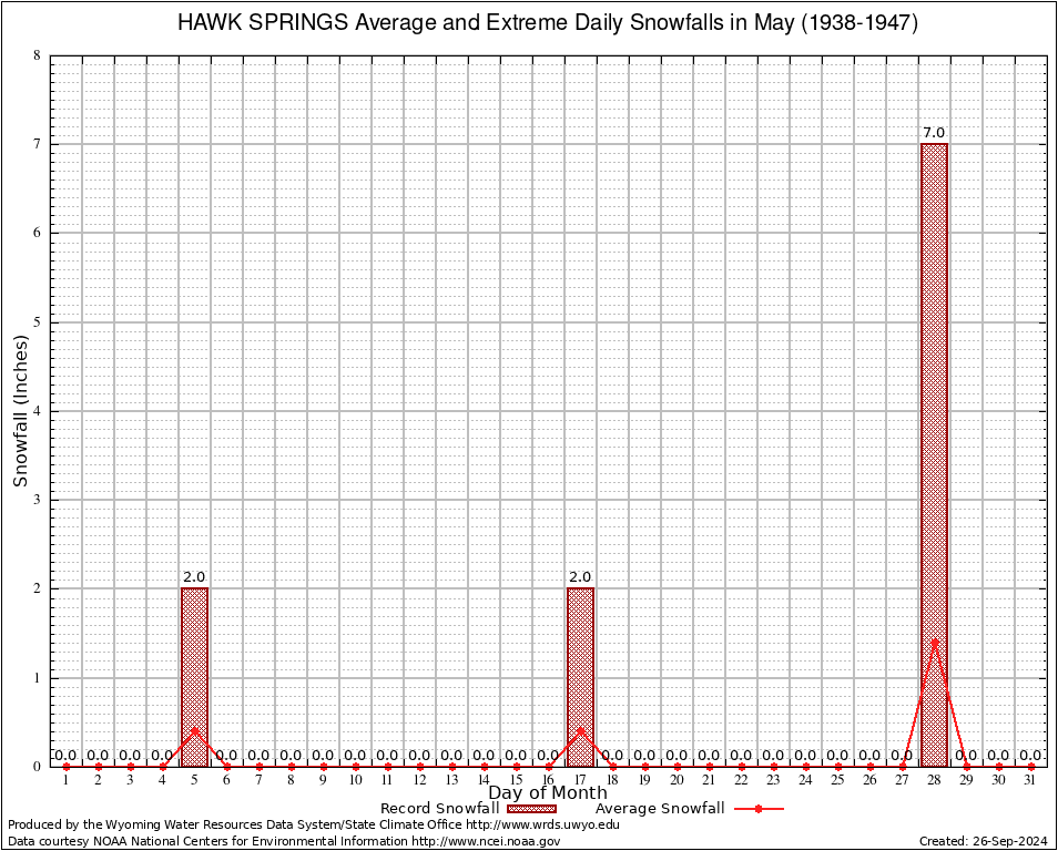 May Average and Extreme Daily Snowfall AMounts (1938-1947)