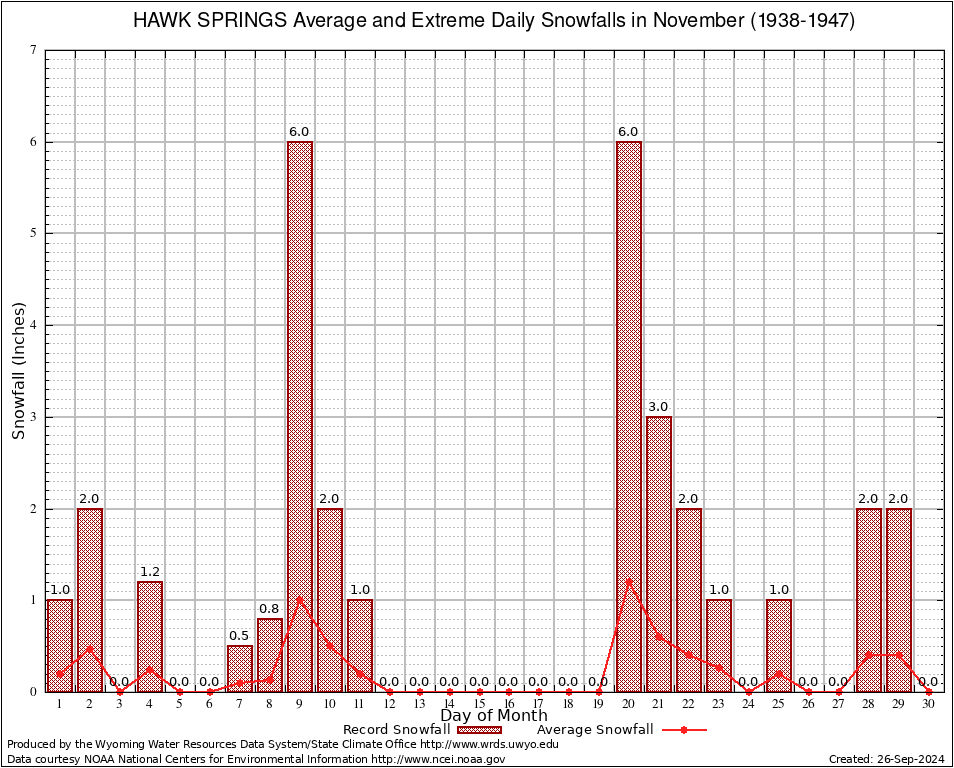 November Average and Extreme Daily Snowfall AMounts (1938-1947)