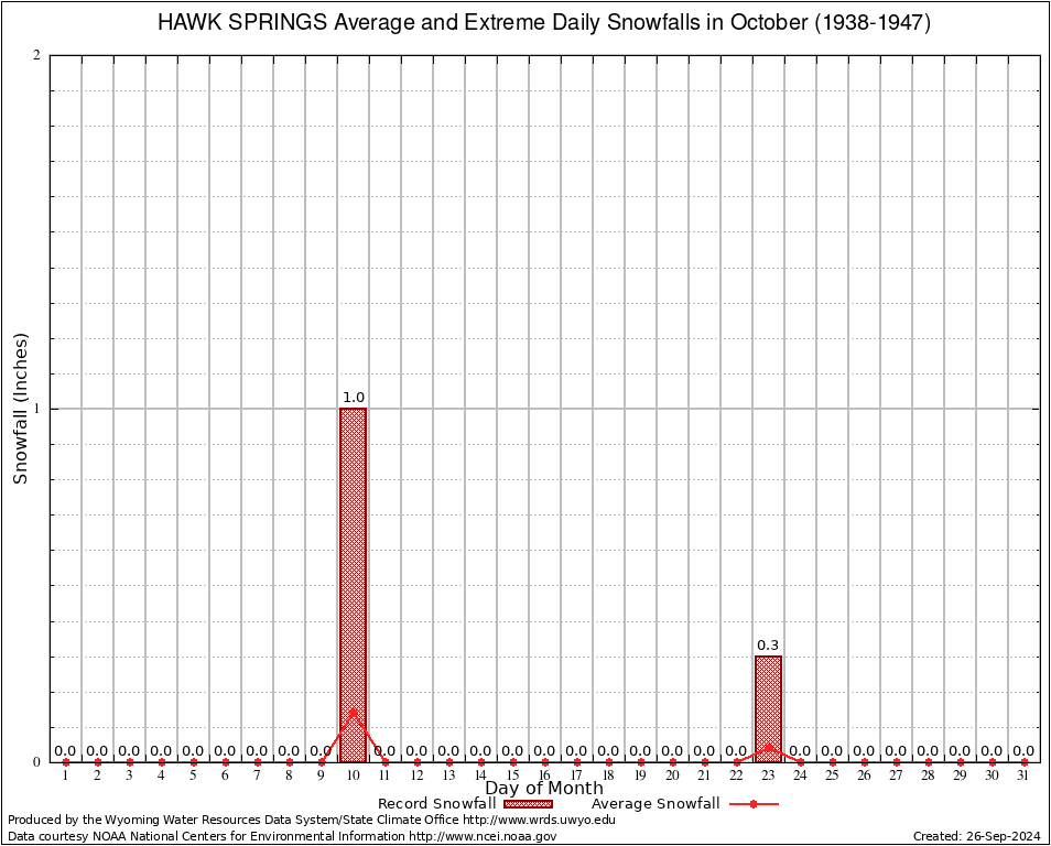 October Average and Extreme Daily Snowfall AMounts (1938-1947)