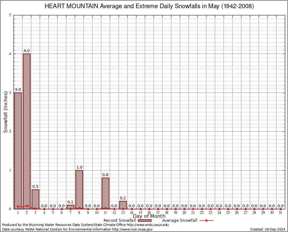 May Average and Extreme Daily Snowfall AMounts (1942-2008)