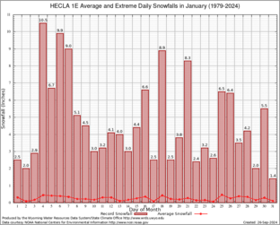 Record Extreme and Average Daily Snowfall (1979-2024)