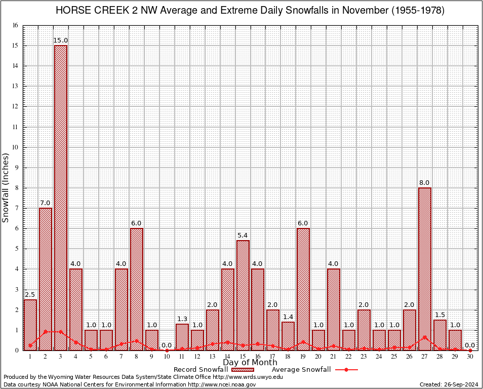 November Average and Extreme Daily Snowfall AMounts (1955-1978)