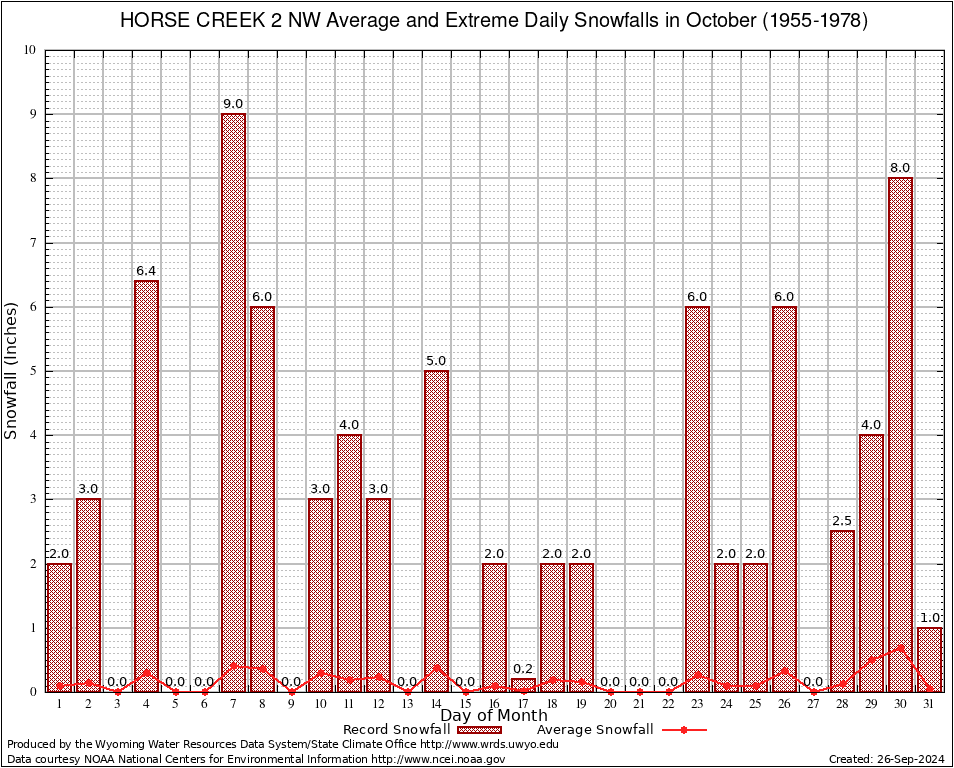 October Average and Extreme Daily Snowfall AMounts (1955-1978)
