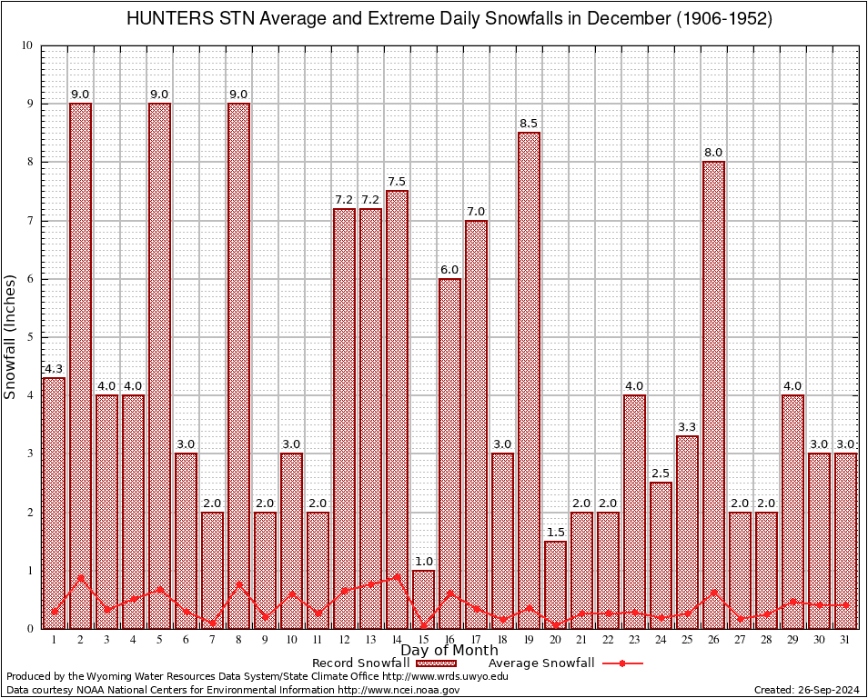 December Average and Extreme Daily Snowfall AMounts (1906-1952)