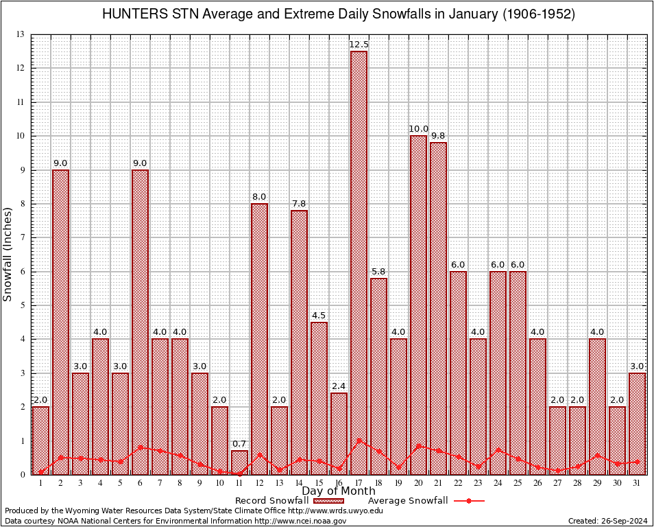 January Average and Extreme Daily Snowfall AMounts (1906-1952)