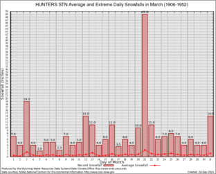 Record Extreme and Average Daily Snowfall (1906-1952)