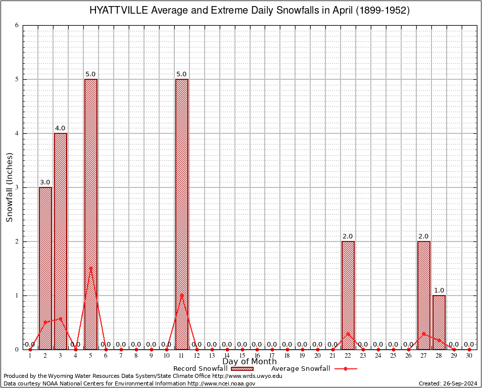 April Average and Extreme Daily Snowfall AMounts (1899-1952)