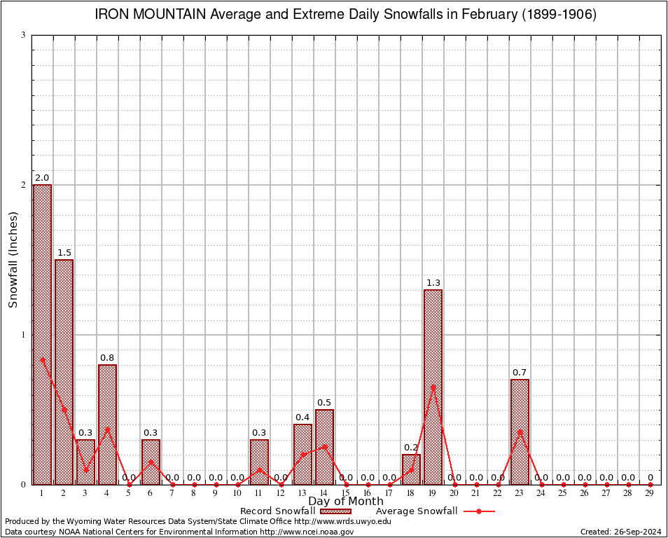 February Average and Extreme Daily Snowfall AMounts (1899-1906)