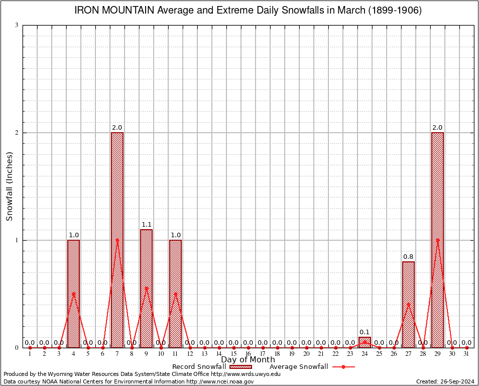 March Average and Extreme Daily Snowfall AMounts (1899-1906)