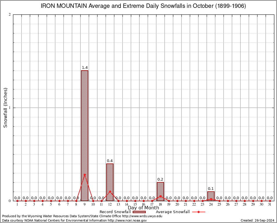 October Average and Extreme Daily Snowfall AMounts (1899-1906)