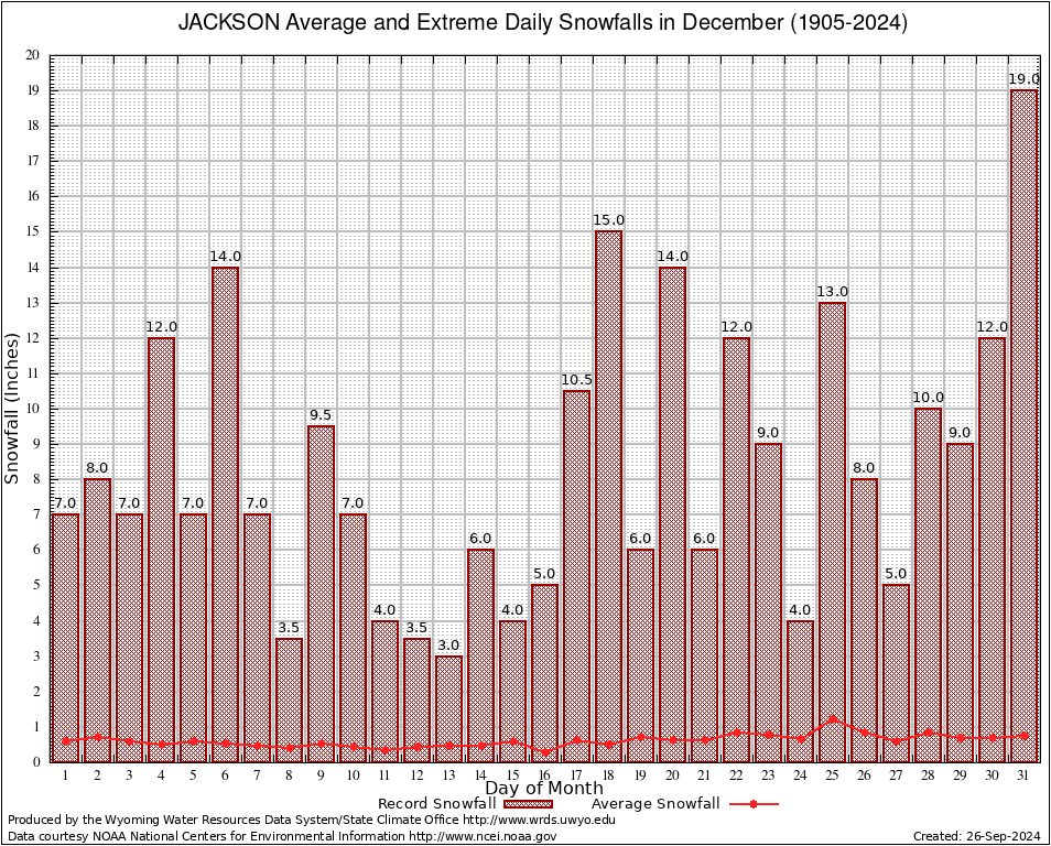 JACKSON (484910) December Average and Extreme Daily Snowfall AMounts (1905-2024) To index page for JACKSON