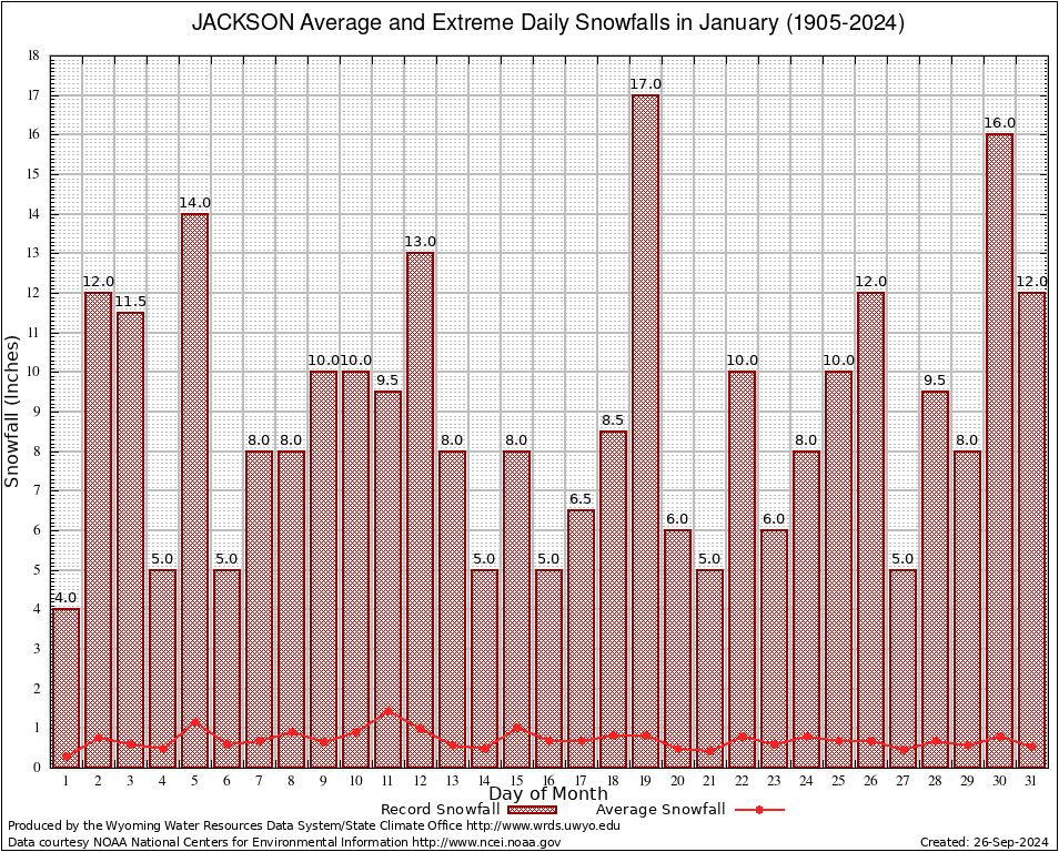 JACKSON (484910) January Average and Extreme Daily Snowfall AMounts (1905-2024) To index page for JACKSON