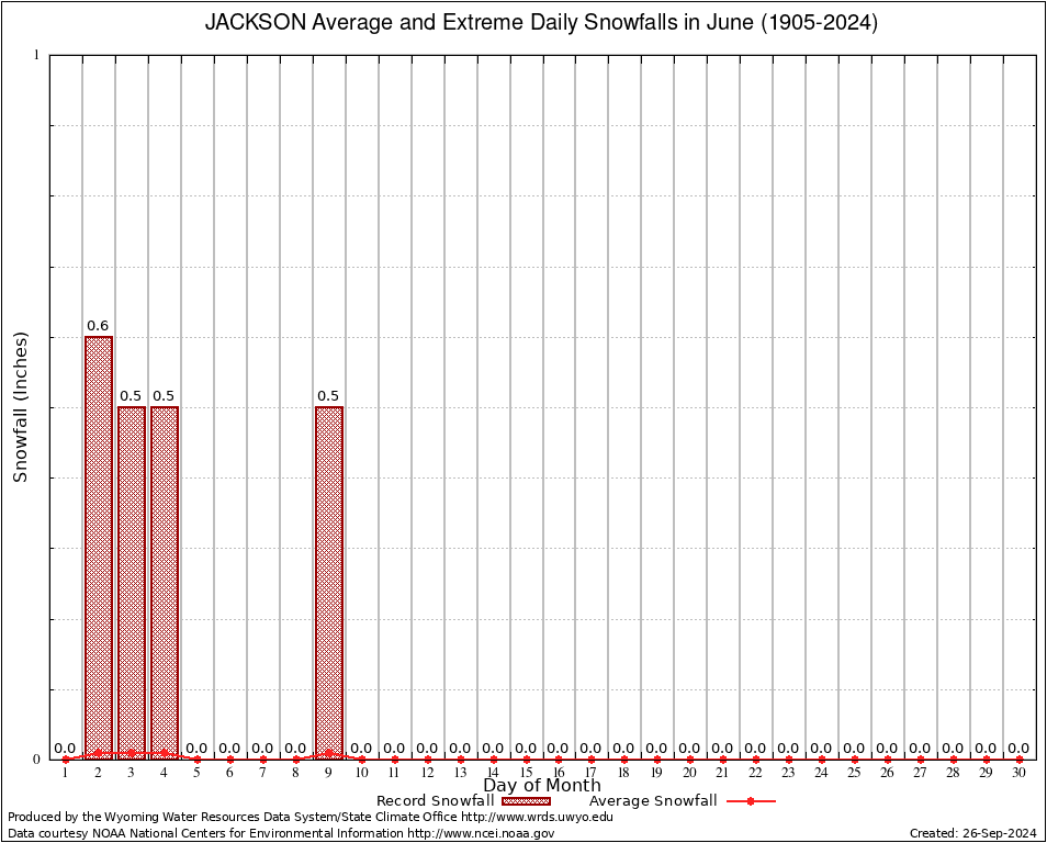 JACKSON (484910) June Average and Extreme Daily Snowfall AMounts (1905-2024) To index page for JACKSON