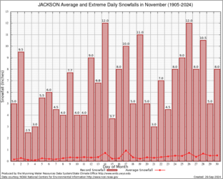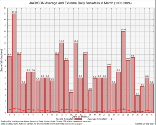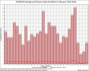Record Extreme and Average Daily Snowfall (1905-2024)