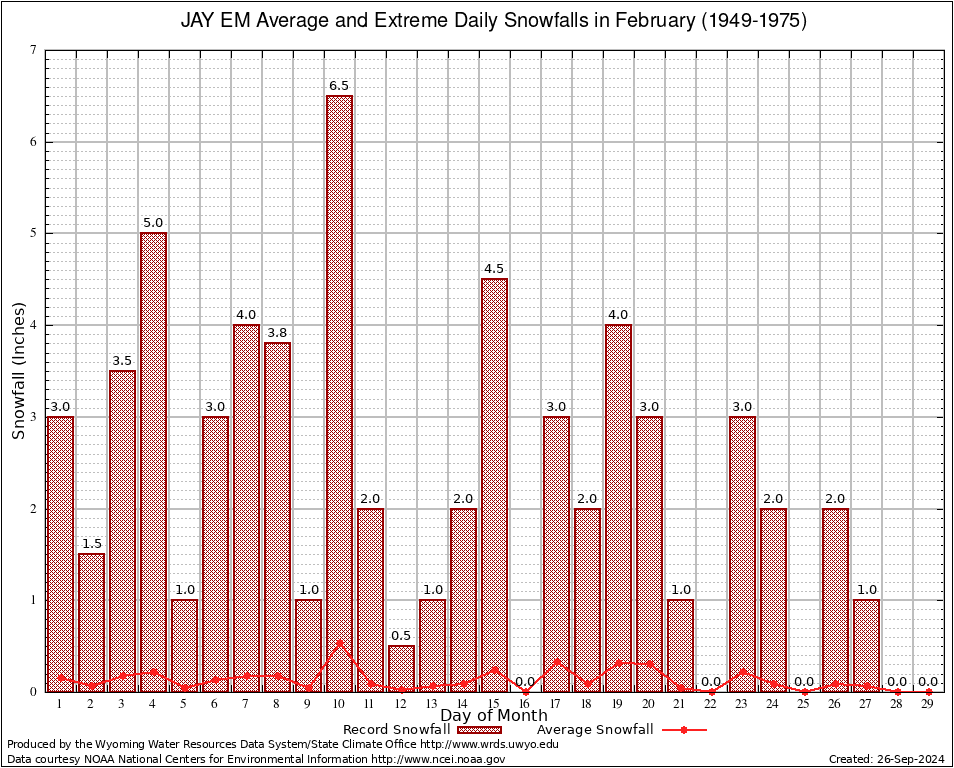 JAY EM (484920) February Average and Extreme Daily Snowfall AMounts (1949-1975) To index page for JAY EM