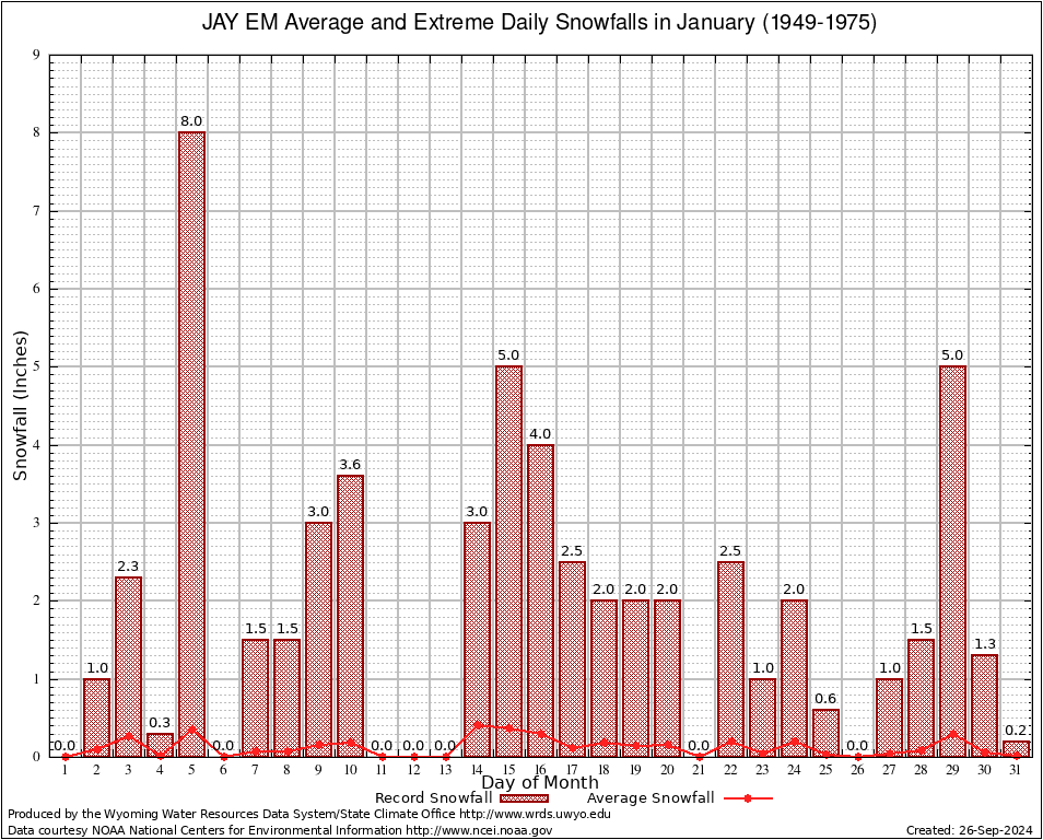 JAY EM (484920) January Average and Extreme Daily Snowfall AMounts (1949-1975) To index page for JAY EM