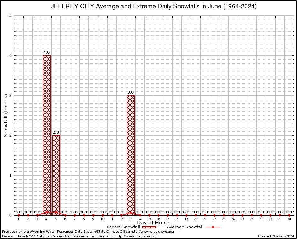 June Average and Extreme Daily Snowfall AMounts (1964-2024)