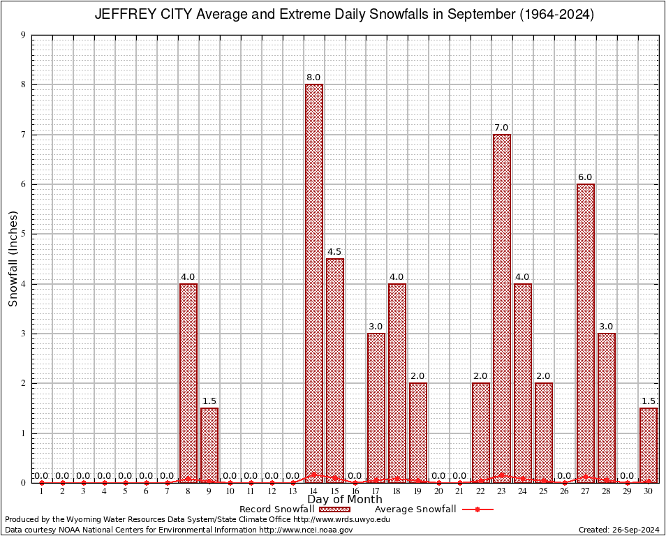 September Average and Extreme Daily Snowfall AMounts (1964-2024)